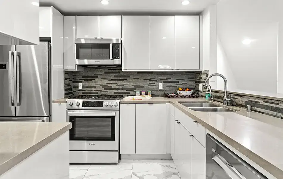 This fully renovated Santa Monica townhouse features a brand new kitchen, dramatic 2-story ceilings with skylights, private sundeck, 2-car garage, and multiple patios in Franklin School District.